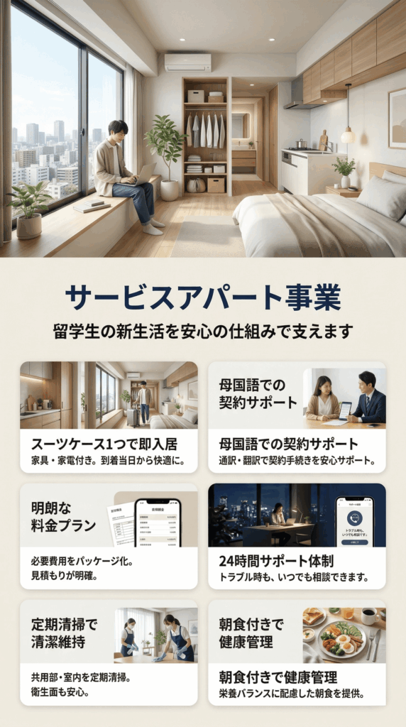 留学生支援という社会的な意義と、投資としての収益性。この両方を満たす「質の高い住居」を共に創り上げます。